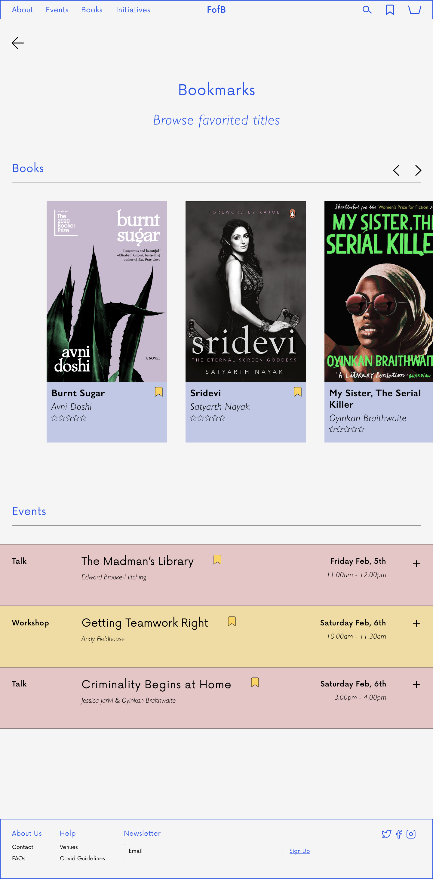 This project was not without setbacks, initially my intention was to stick to redesigning an existing literary event platform, but it was clear at closer to completion that that would not be enough to draw users in. It was important that I added features that would encourage exploration, and that users would want to stay on the site for longer as the site mostly served the purpose of annual event programming.